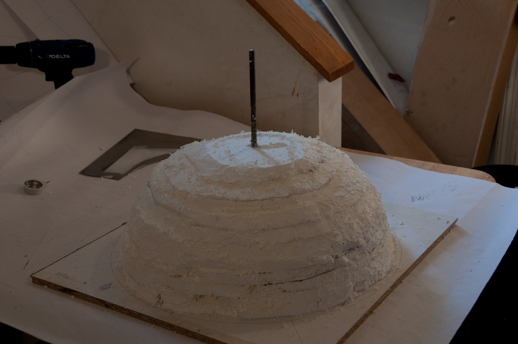 Construction of the Dome plug began with a plaster form. This is one of those steps that would be a whole lot easier with access to a largeish CNC mill. The dome is usually the part people start their build with as the plaster has to be left to dry for weeks or months.